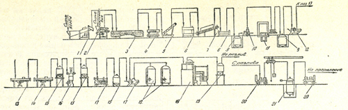 тель; 14 — охладитель КТП-2; 15 — сборник-мерник МЗС-411; 16 — сепаратор-кларификатор ВСМ; 17 — фнльтр-пресс